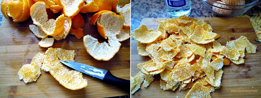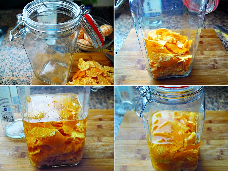 Lo primero que tienes que hacer es la maceración de las cáscaras de las mandarinas: