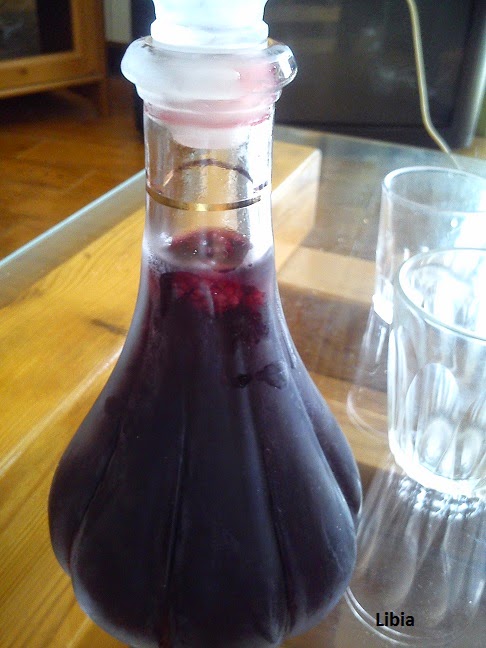 Una vez transcurridas estas dos semanas, se cuela con un colador muy fino, o de tela, aunque a mí me gusta encontrarme de vez en cuando unas moras y comérmelas, por eso guardé unas pocas y se las volví a echar a la botella. Se mete en el frigorífico y se sirve muuuy frío, como podéis ver en la foto de abajo, botella fría, fría. Está riiiiiiiiiiiiiiico, rico, tan rico que hay que tener mucha fuerza de voluntad para tomarse solo un vasito jeje.