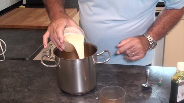 Batimos todo con un batidor eléctrico durante unos 5 minutos. Tiene que quedar muy bien batido para que el licor quede bien mezclado.