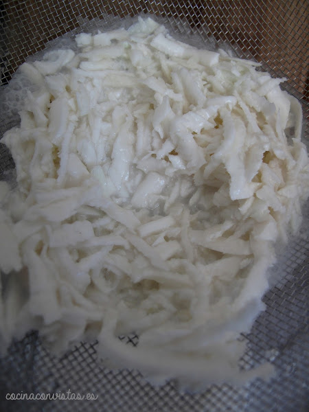 Rallar el coco sin piel y poner a hervir con el agua. Dejar enfriar.