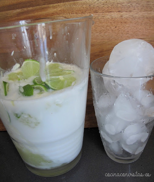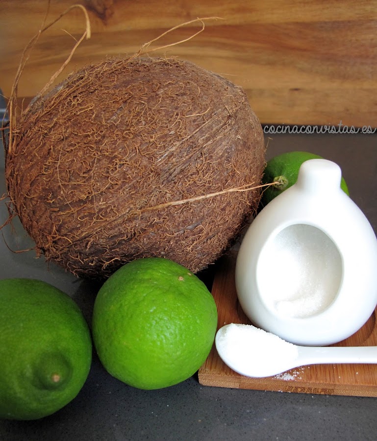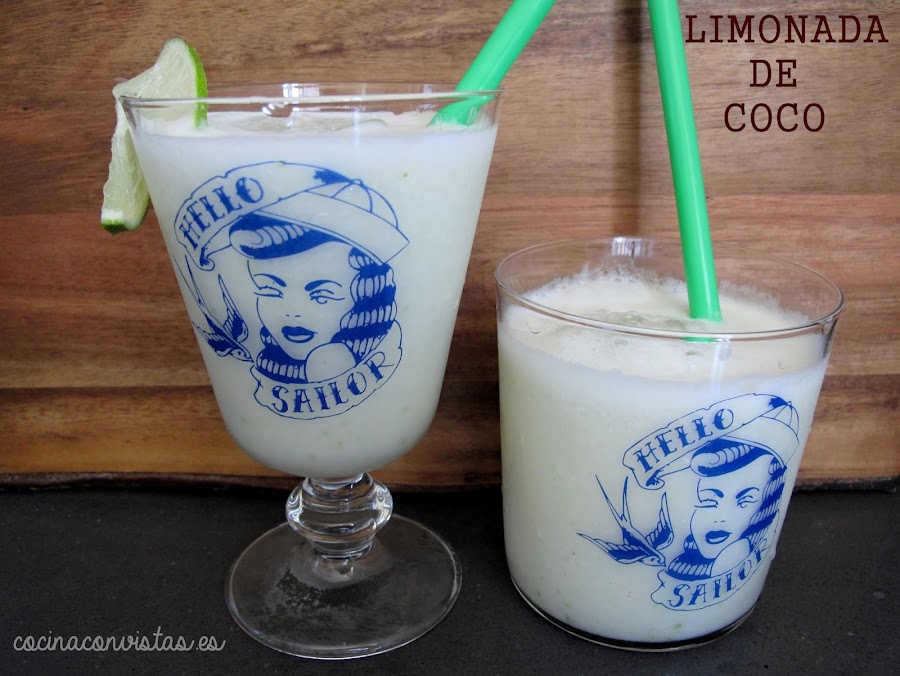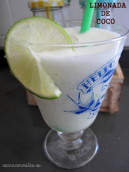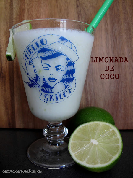 La limonada de coco es una bebida muy popular en Colombia que yo ya he adoptado en mi casa como remedio instantáneo para el calor del verano y que creo que debería suministrarse por ley en todo chiringuito de playa respetable. Aunque su nombre puede llevar a equívocos, esta limonada se hace con lima, a la que en Latinoamérica llaman limón, de ahí que no se llame limada, o limanada o cualquier pala ...