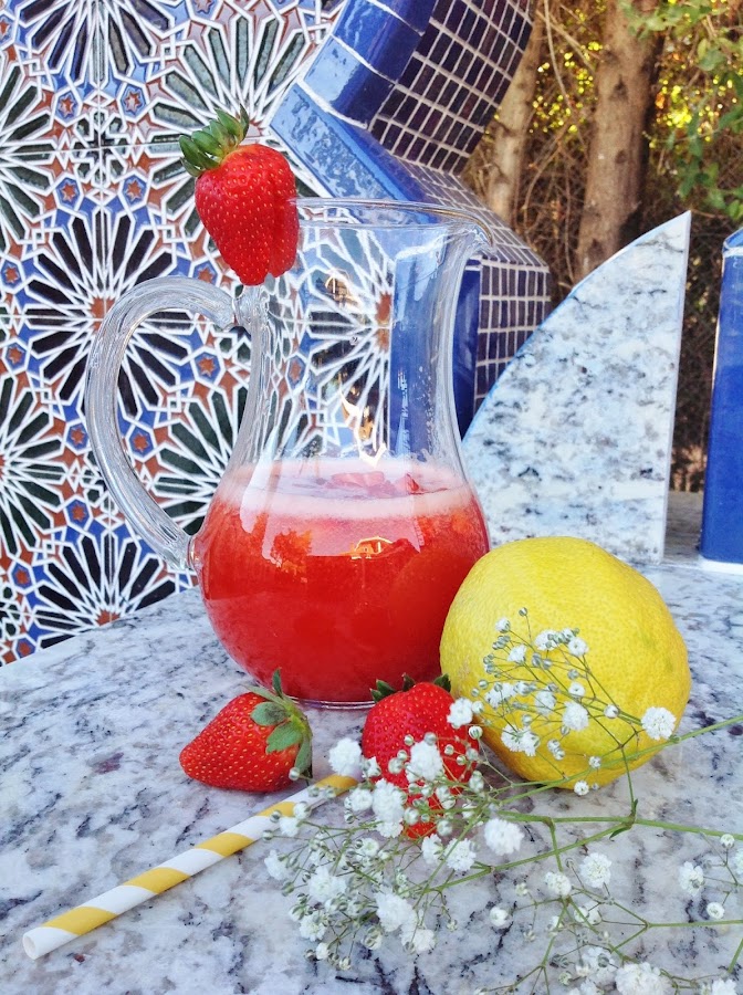Ya la había visto varias veces en Pinterest, que sabéis que me encanta, y en mi tablero Inspiración podéis encontrar miles de ideas para todos los gustos. Pues allí estaba diciéndome, ¡date prisa que pronto ya no habrá fresas! y entonces me fui corriendo al super y las compré. Casi las últimas, pero todavía a buen precio. ¡Uffff, menos mal! Si es que no se puede dejar todo para el final. Pero tenía una razón para hacerla ahora y es que era el cumpleaños de mi papi y como a él le gustan tanto las limonadas, pensé en hacerle alguna diferente a la de limón de siempre.