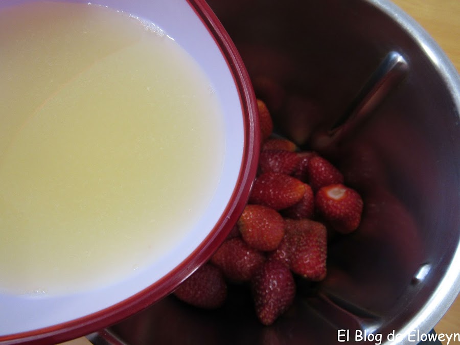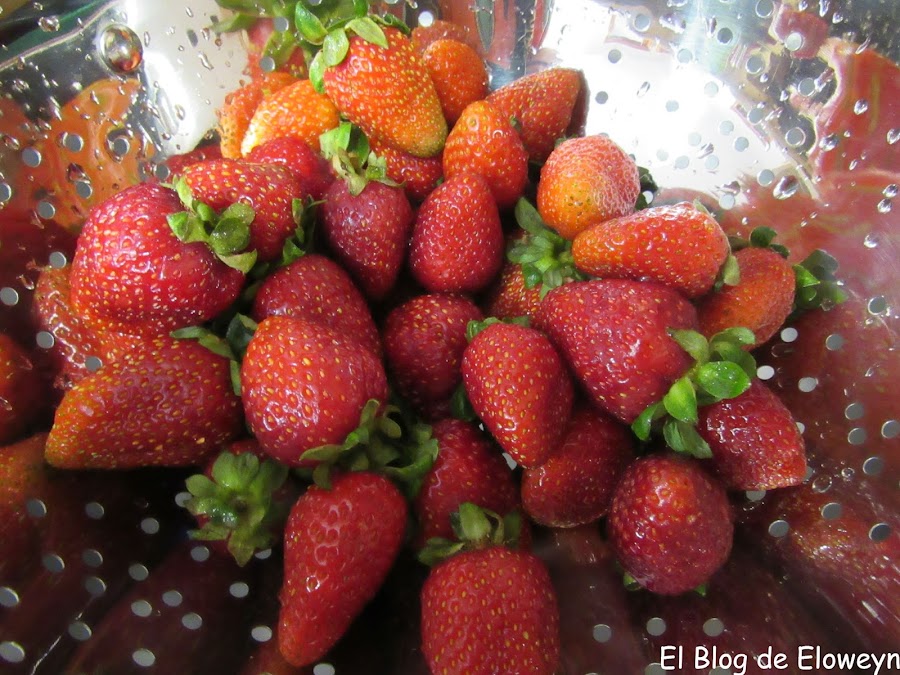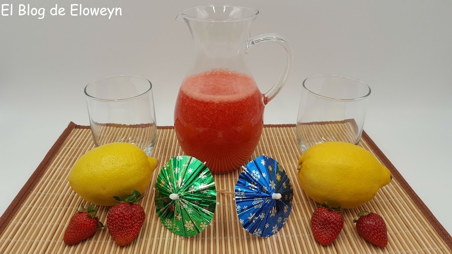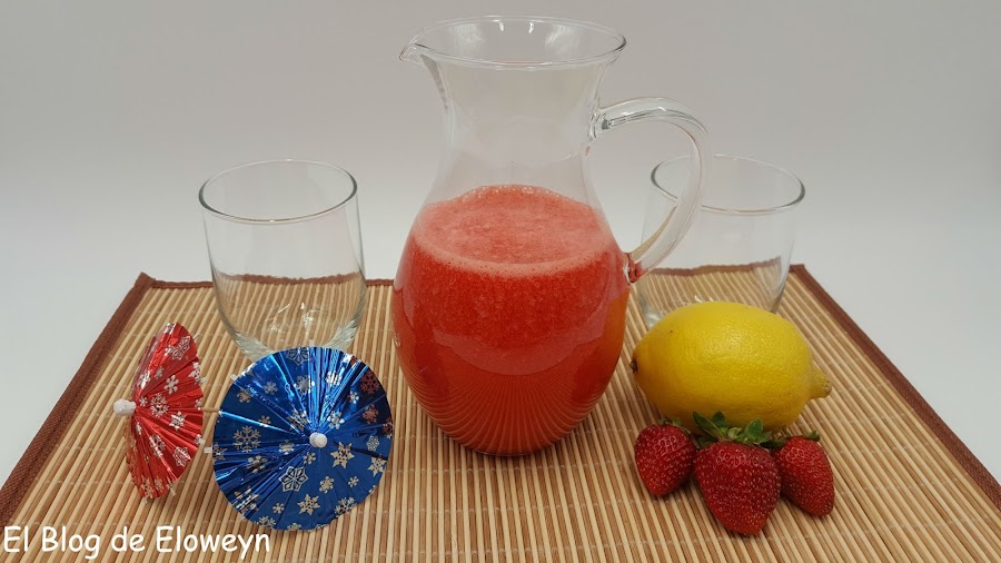 Como cada verano, en casa siempre hacemos una limonada de sandía que está de vicio, y el otro día, como nos faltaba sandía, me fui para el supermercado a comprar una. No me convencieron nada las sandías que había, pero habían fresas, y pensé en hacer limonada de fresas en lugar de sandía.