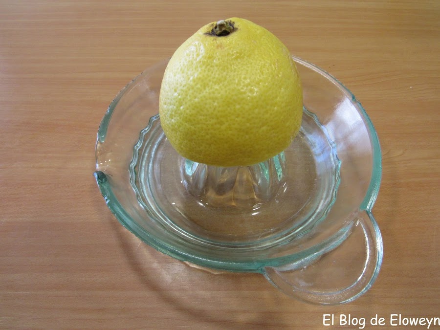 Exprimimos los limones. Usamos un colador para colar el zumo y que no haya trocitos ni semillas.