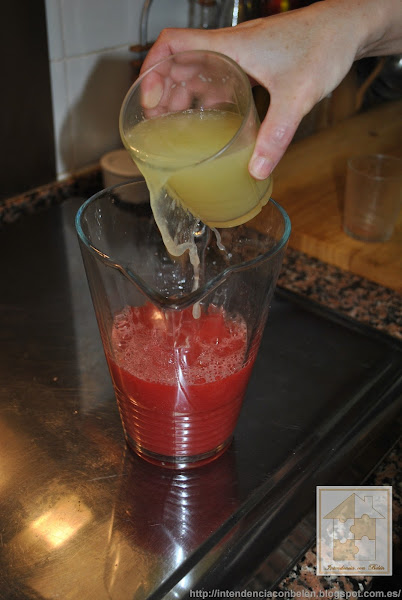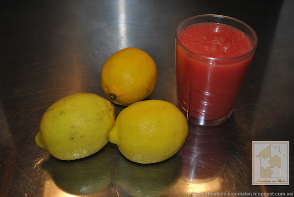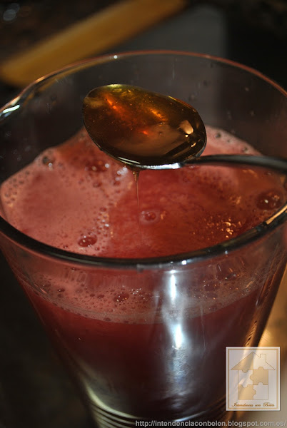 En éste momento os aconsejo que probéis el zumo, ya que puede ser que esté demasiado ácido y no os agrade. Yo he tenido que añadir una cucharada de miel para rebajar el nivel de ácido del zumo.
