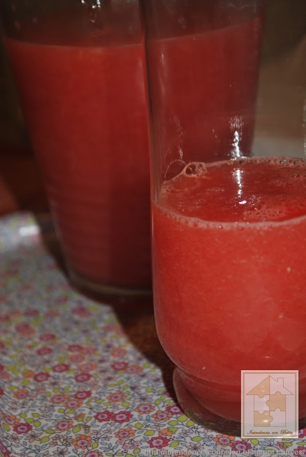 Es muy sencilla, por supuesto que podéis añadir otras frutas, como un par de limas, y cambiar el agua mineral por medio vaso de agua con gas, lo que le dará más sensación de refresco, pero a mí me gusta más la sensación de bebida natural, sin gas y sin nada.