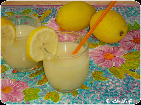 Lavar y cortar en trocitos los limones sin quitar la piel. Los echamos al vaso de la batidora. Añadimos los vasos de agua. Batimos. Una vez batido, colamos con un colador. Volvemos a echar en la jarra de la batidora y agregamos el azúcar y los cubitos de hielo. Volvemos a batir. Reservamos en la nevera y servimos fresquita.