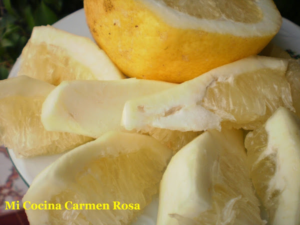 El limón se pela y se le deja parte de lo blanco junto con la pulpa, lo hacemos trocitos y le echamos un poquito de sal, o bicarbonato y ¡a comer!. ¿Se atreven?