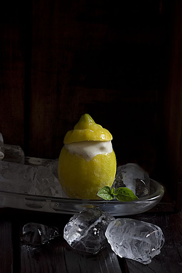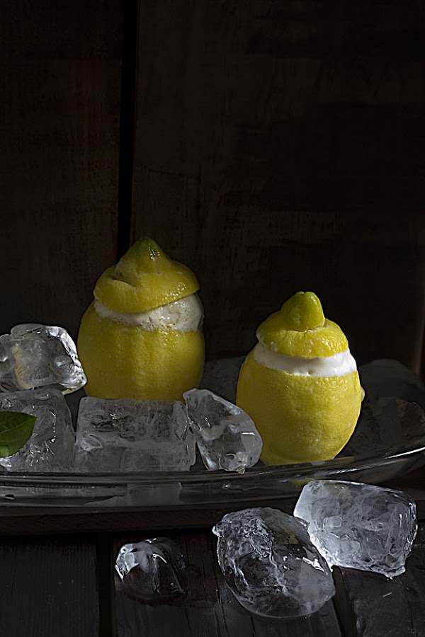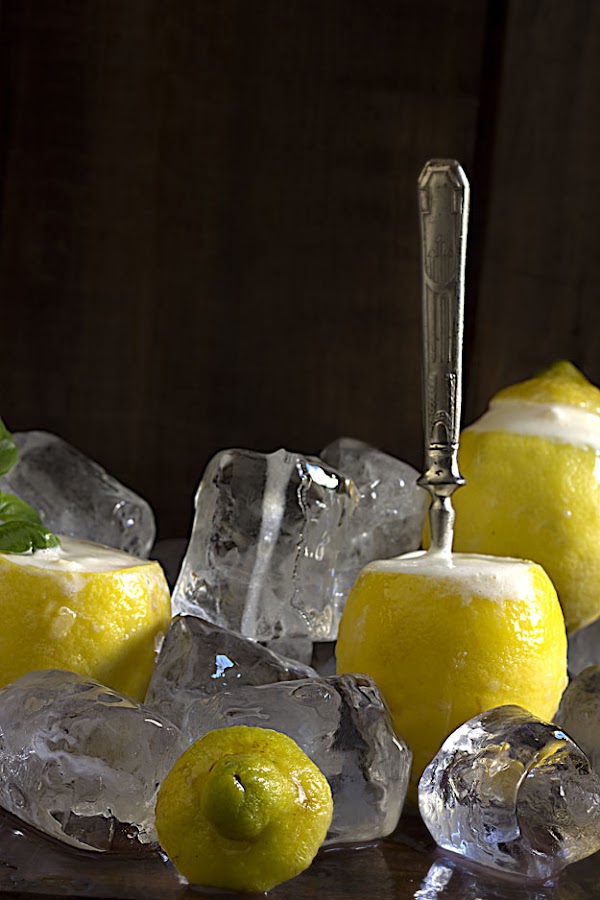 Llevaba un montón de tiempo queriendo publicar esta receta, por fiín hace unos días me decidí a prepararla, pensaba en lo vistosa y bonita que podría quedar, pero debo reconocer que fue una lucha contra el tiempo, porque en Madrid hacía un calor sofocante y el sorbete de los limones, se derretía poco a poco según pasaban los minutos...