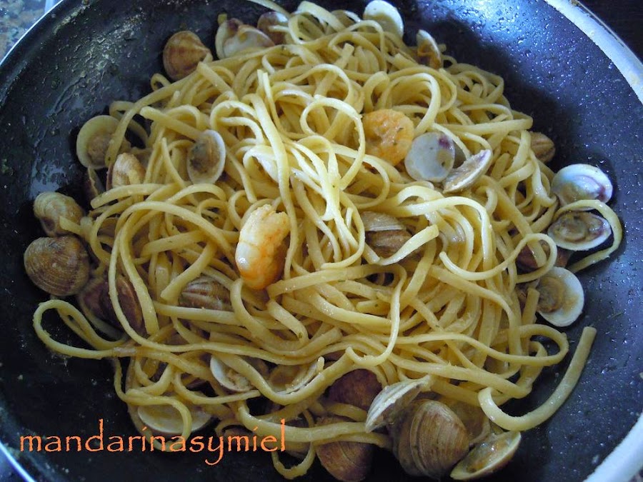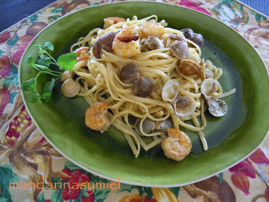 Los linguinis o tallarines con langostinos y almejas, son un plato de pasta que tienen un sabor