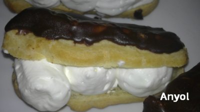 Corta las lionesas en dos por la horizontal, rellenalas de nata (crema de leche) y pintalas con chocolate fundido. Espera que sequen en el frigo y a COMEEEEERR.