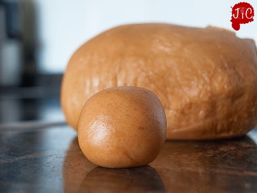 - Pasado ese tiempo, sacamos la bola y vamos haciendo bolitas del tamaño de nueces. Para hacer dedos normales yo he usado bolas que pesaban unos 13 gr; para los grandes, 24 gr; y para los pequeños, 7gr. Las medidas son aproximadas.