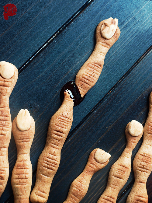 Espero que os guste la receta y que no os eche para atrás. A los más pequeños seguro que les encanta poder comerse uno de estos terroríficos dedos zombie... Para causar más impresión podéis acompañarlos con un poco de sirope de fresa... ¡estarán perfectos para el día de Halloween!