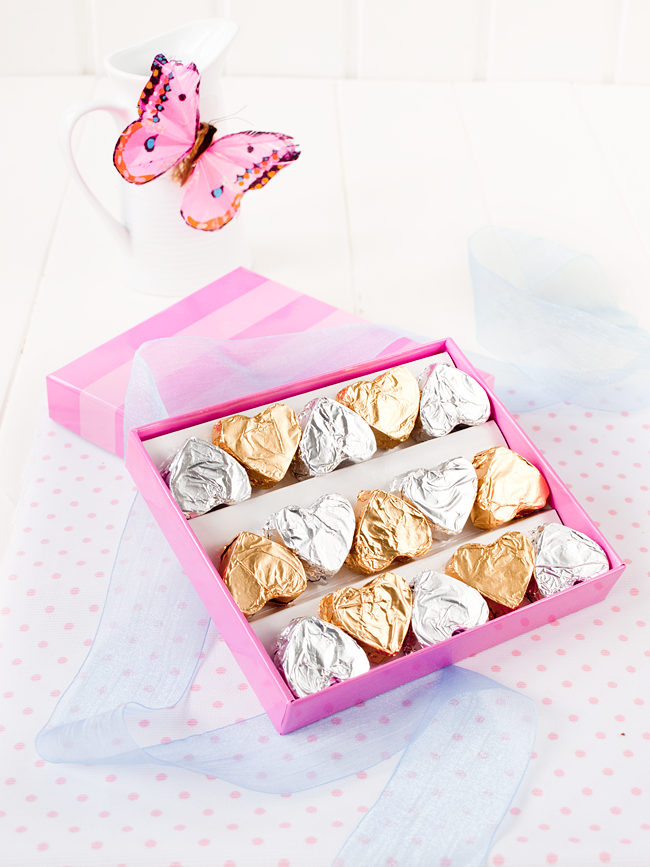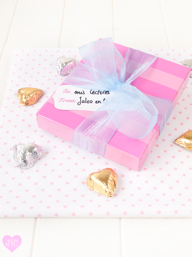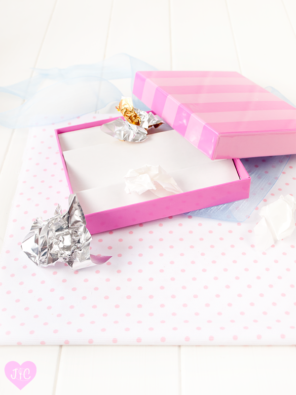 - Podemos envolverlos con papel de bombones. Yo he utilizado dos colores. Los metemos en una caja y se los regalamos a la persona que queramos. Es un regalo muy especial.