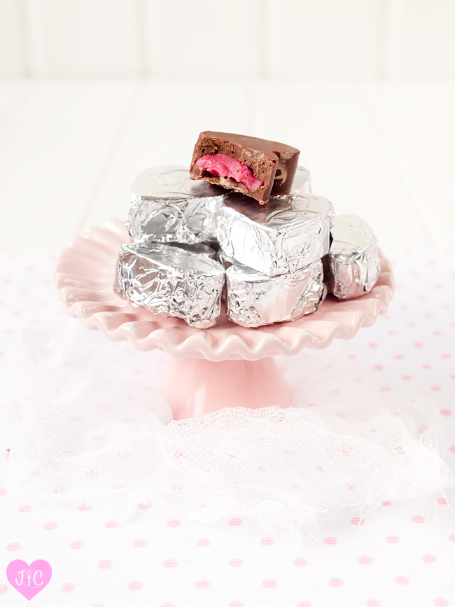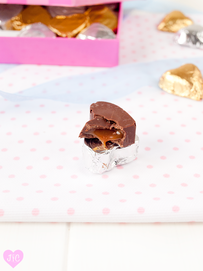 Muchos blogs ya han preparado recetas de San Valentín y Jaleo en la Cocina no iba a ser menos. Os traigo la primera propuesta para este día: bombones caseros rellenos. Yo he optados por dos rellenos: caramelo y frambuesa. No sé cuál está más delicioso, ¿qué tal si los pruebas y decides?