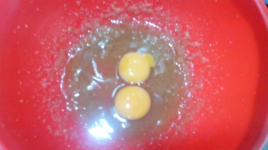 Comenzamos batiendo el aceite con el azúcar moreno.
