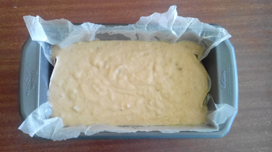 Vertimos en un molde alto, rectangular, tipo loaf, previamente engrasado y enpapelado, con papel engrasado de cocina. Rasgué el papel de cocina para darle un aspecto más rústico al presentarlo ;)