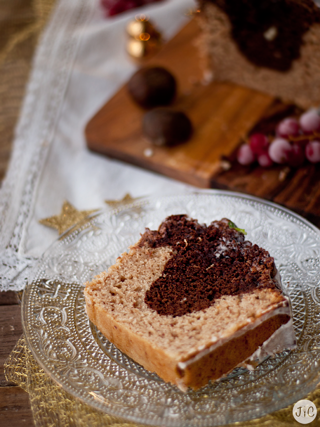 Lo que más me costó fue elegir los ingredientes principales del bizcocho, pero estando en diciembre y con la Navidad tan cercana, no lo dude: castañas... y chocolate. Es una combinación fantástica para cualquier bizcocho. Además, si le añades el toque de las especias, tienes un resultado increíble. Y, para darle un toque navideño, decidí añadirle este glaseado con el que le daba el punto nevado tan especial. Ha sido un resultado fantástico.