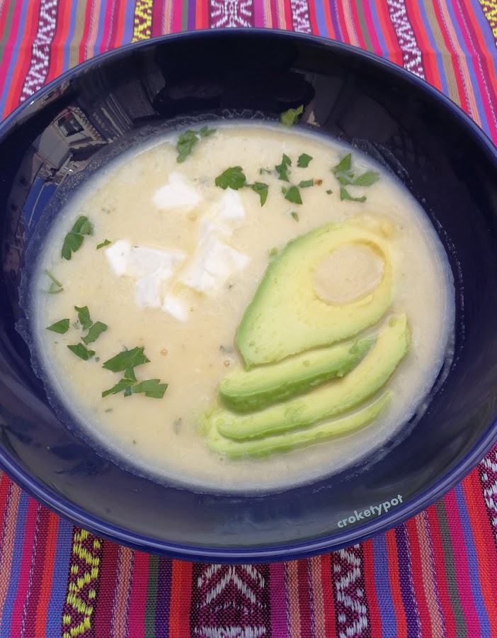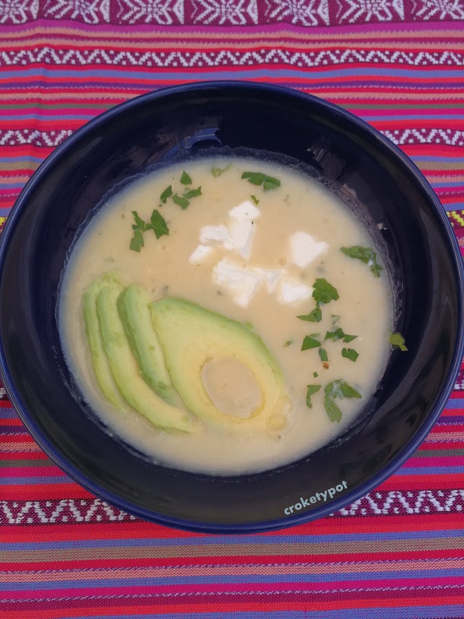 Para elegir una receta, y como el reto trataba de Quito me he centrado en su plato tradicional el Locro Quiteño y he hecho un locro de papa con queso, que es una sopa tradicional ecuatoriana de patatas cortadas en trocitos que se desarman en la cocción a la que se añade crema de leche y queso que se sirve con tajadas de aguacate y ají.
