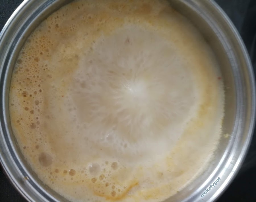 Añadimos el pimentón, el comino y el chile, movemos bien y ponemos las patatas cortadas muy pequeñas, un vaso de leche y cubrimos con agua. Dejamos cocinar 15 minutos para que la patata se haga bien. Cuando ha cocinado podemos aplastarlas con un machaca patatas, pero no ha de quedar muy fino.