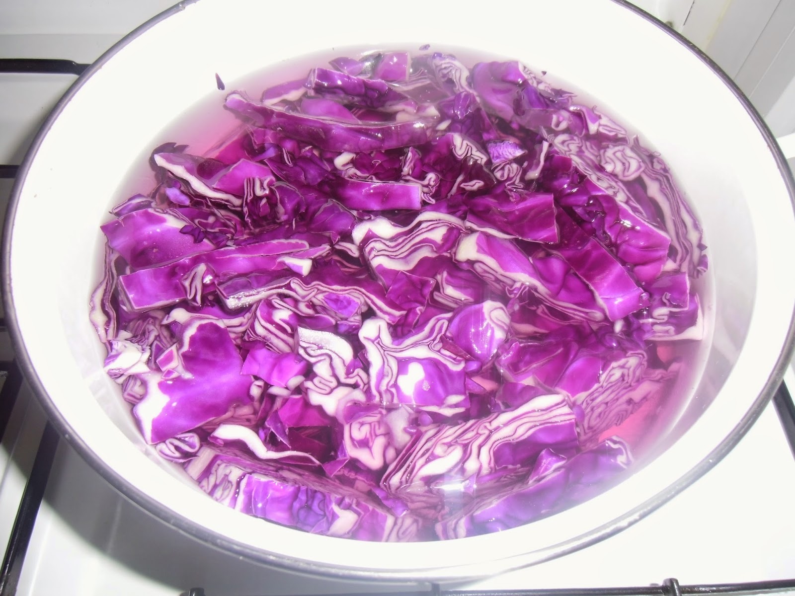En una olla ponemos agua abundante un buen chorro de vinagre, una cucharada de azúcar y cocemos la lombarda durante 25 minutos o hasta que se ponga tierna.