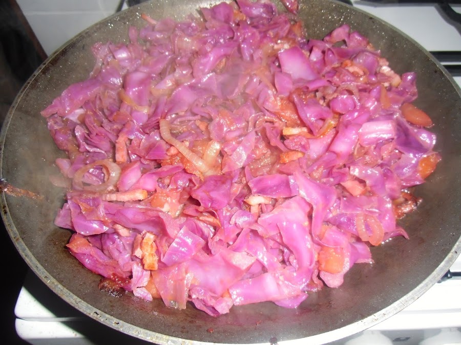 Seguidamente agregamos la lombarda y cocinamos 5 minutos más