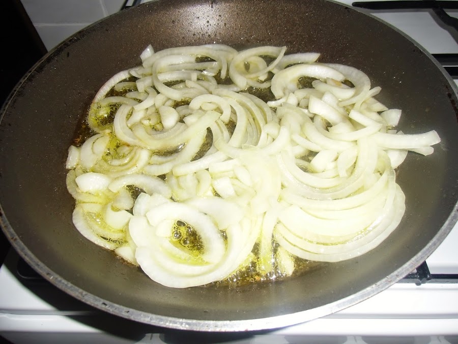 En una sartén con un poco de aceite pochamos la cebolla cortada en juliana, los ajos picados y salpimentamos.