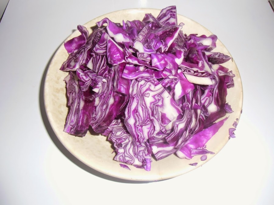 Lavamos y cortamos la lombarda en julianas desechando el tallo.