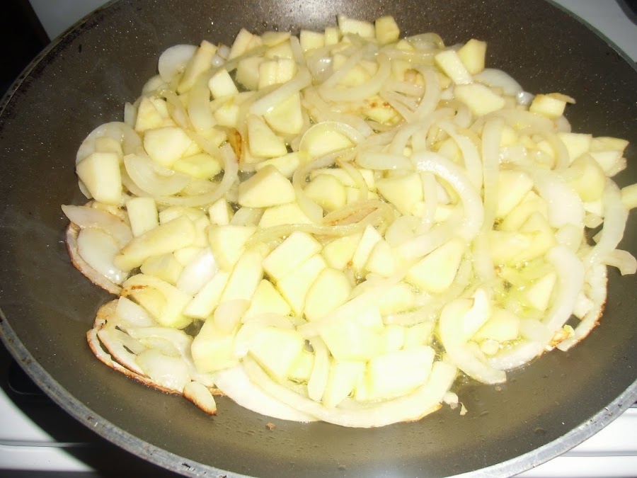 A continuación incorporamos las manzanas peladas y cortadas a dados.