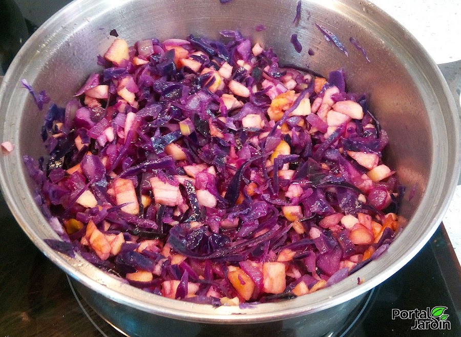 (como la col es ligeramente dulce, es mejor usar manzanas verdes que sean ácidas)