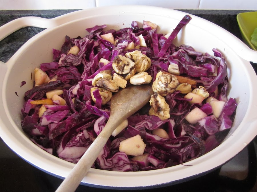 Esta receta se la dedico a mi amiga Verónica, es madrileña, y me dijo que se comía siempre en su casa en Navidad, y hemos tenido bastante cachondeo con la lombarda, pero bastante bastante......
