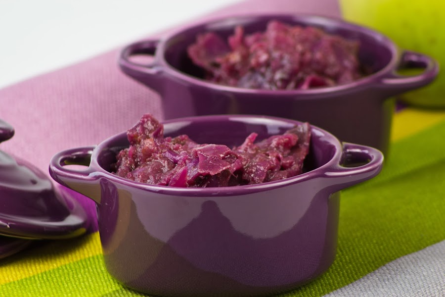 Lavar la lombarda y cortarla en trocitos pequeños. Echar en una cazuela con agua hirviendo y un poco de sal. A media cocción añadir una manzana reineta pelada y cortada. Ponerle también un chorrito pequeño de vinagre de manzana. Dejar que se cueza todo junto e ir probando el punto de cocción hasta que todo esté blandito. Mi madre comenta que la lombarda es de las pocas verduras que necesita una buena cocción, y ello implica dejarla muy cocida.