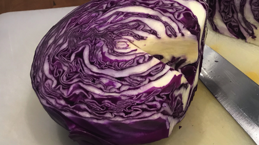 Retira las hojas externas de la lombarda así como el tronco. Corta en juliana.