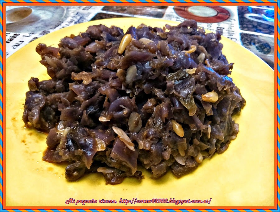 Una vez hechos estos pasos ahora echamos la lombarda cocida y dejamos unos minutos mezclando bien con una cuchara y rectificamos de sal , retiramos del fuego y servimos en una bandeja , ya esta lista esta verdura que es muy buena y sana , a mi me gusta mucho y yo os la recomiendo.