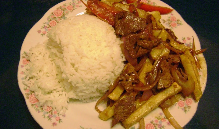 condimente las tiritas de lomito con la sal,pimienta y comino caliente una sarten con el aceite coloque el lomito deje dorar,una vez dorado agrege la cebolla,chile verde y ajo cocine 5min a calor alto,ahora coloquemos el tomate,vinagre y el vino tinto bajamos el calor y cocinamos tapado por 15min,pasado el tiempo triture un poco el tomate agrege el perejil picado sal y pimienta deje unos segundos mas sirva el lomito en un platon con papas fritas acompañar con arroz blanco.