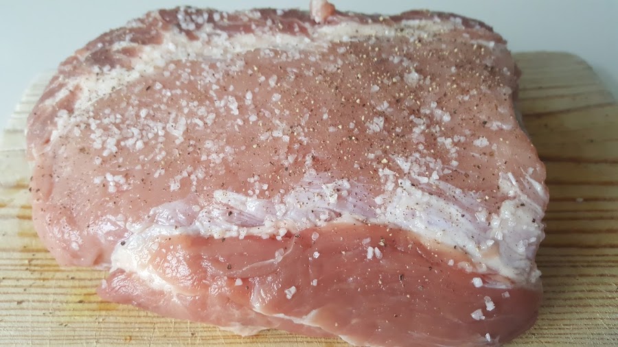 2. - Mientras se hacen, salpimentamos el lomo por todos lados.