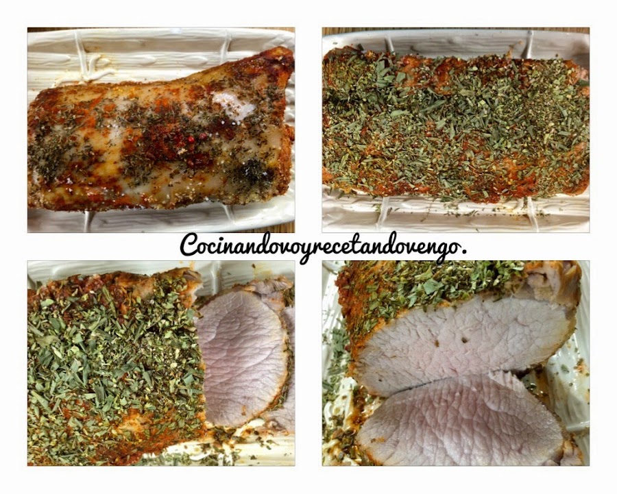 Pasado el tiempo. Sacar del horno con mucho cuidado. Dejamos templar sobre la encimera unos 5 minutos. Con ayuda de un cuchillo cortamos lo que podemos imaginar que sería el exterior del lomo (ver fotos anteriores)