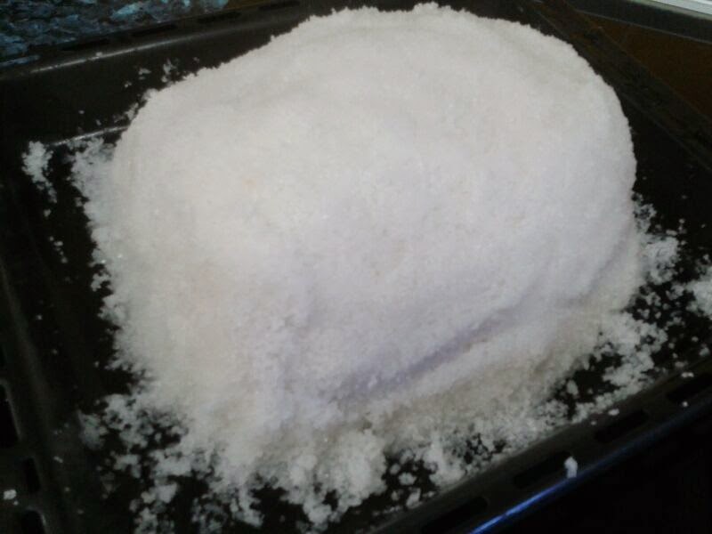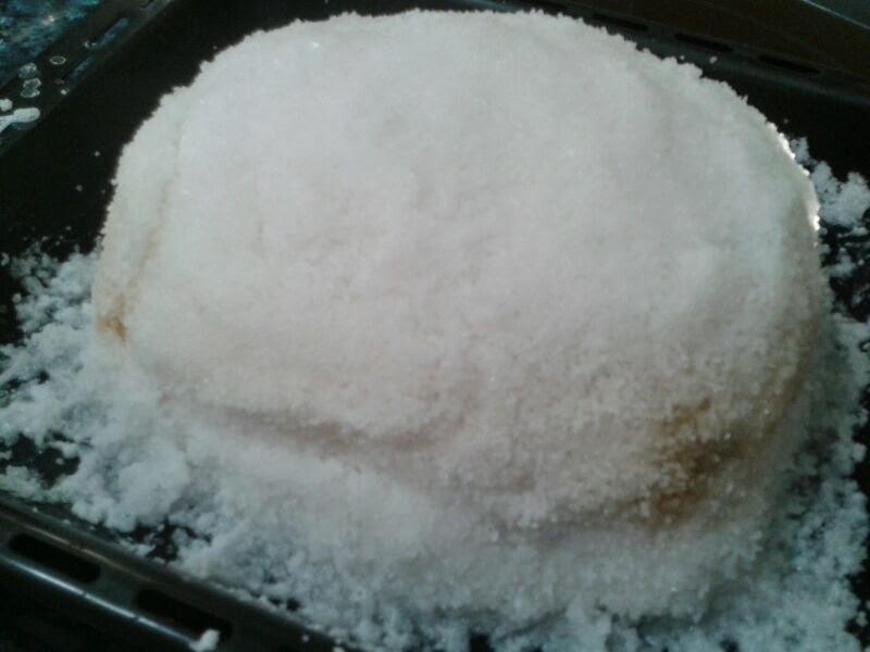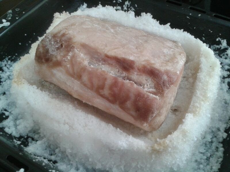 Si hemos compactado bien la sal cuando el lomo esté hecho debe separarse la parte superior y podemos quitarla en una pieza completa.