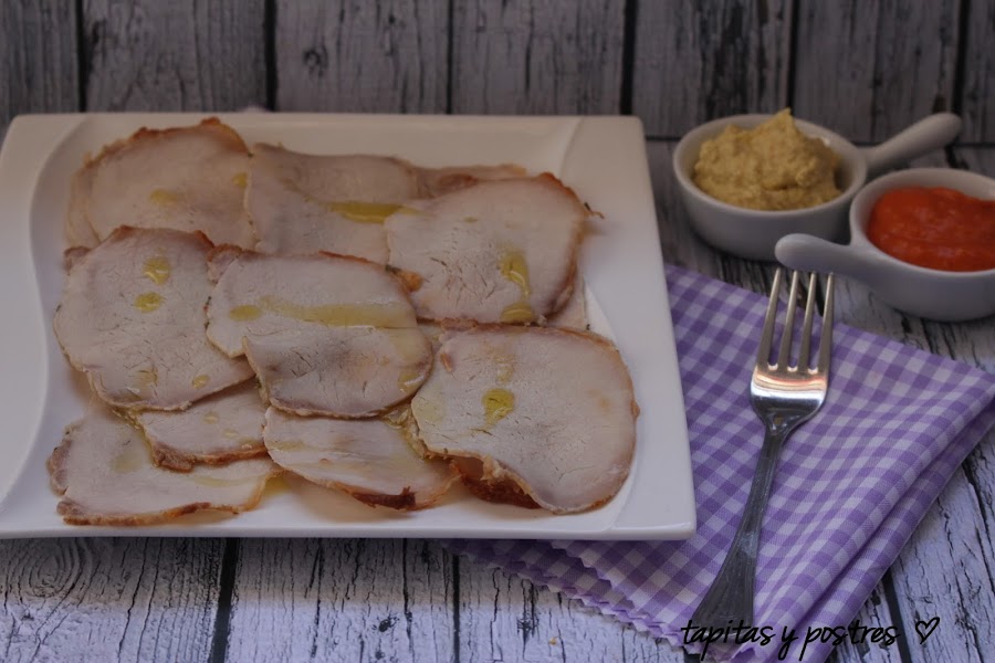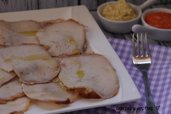 Dejamos enfriar bien y metemos en la nevera envuelto en papel aluminio. En el momento de servir cortamos en lonchas finas y regamos con un hilo de aceite de oliva.