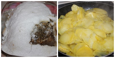 Sacamos el lomo de la sal, dejamos que se enfríe y lo cortamos en lonchas finas. Lo servimos con un poquito de pimienta molida por encima y un chorrito de aceite de oliva, y acompañado de las patatas panaderas.