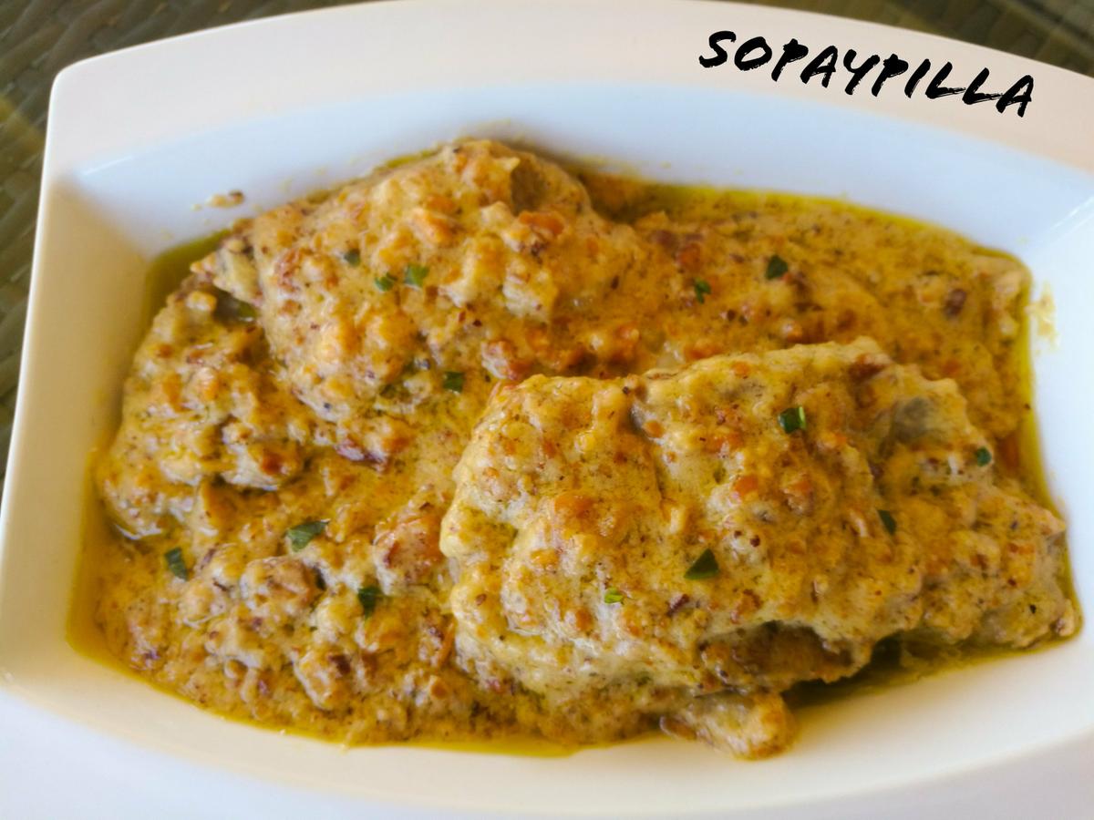 Bueno pues la receta de hoy es de esas de preparar pan para mojar, y de disfrutar muchísimo con la carne tan tierna y el saborazo de las almendras. Por si fuera poco se prepara en 20 minutos como máximo. Así que..qué más le pedimos a una receta?