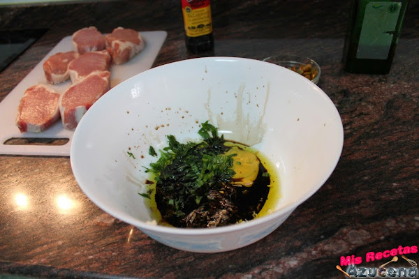 Ahora cogemos los filetes de lomo, los salpimentamos y los introducimos en el bol, mezclamos bien y dejamos macerar la carne durante 1 hora.