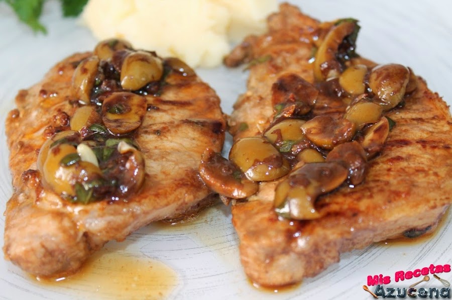 Estos filetes de lomo los acompañe con un puré de patatas y la verdad es que fue un acierto el contraste de la patata con la salsa de la carne.