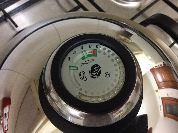 El ultimo paso será añadir un vaso de cuarto agua (250 ml.), rectificar de sal, tapar, poner el fuego al máximo y programar en nuestro "audiotherm" 35 minutos en la función cocer (figura de la zanahoria); esperamos a que el "audiotherm" nos avise que ha llegado la franja roja a la función cocer para bajar el fuego al mínimo y esperar los 35 minutos; cuando nos avise ya estará listo el plato. Dejamos reposar unos minutos y ya podremos servir, nosotros hemos optado por acompañar con un rico arroz colombiano.