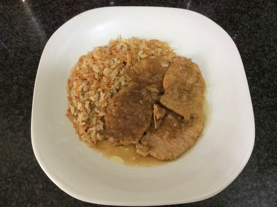 En el aceite de haberlos sellado añadimos la cebolla picada y ponemos a pochar poco a poco, para que vaya soltando los azúcares, por lo tanto tapamos y vamos destapando cuando la franja roja llegue al 98, todo esto a fuego medio-bajo para que se haga lentamente e iremos dando la vuelta y a la misma vez que destapamos secamos la parte interior de la tapadera para eliminar el agua que vaya quedando en el interior. Cuando la cebolla tome un color dorado, suelte el aceite y se vayan uniendo los trozos, ya será el momento de añadirle el azúcar moreno, hacemos un hueco en el centro de la olla y aportamos el azúcar dejamos unos segundos que se comience a derretir y lo mezclaremos bien con la cebolla; a continuación pondremos las tres cucharadas de vinagre de Modena y mezclamos muy bien con la cebolla, dejamos cocinar unos minutos y ya podemos incorporar los filetes de lomo que habíamos sellado.