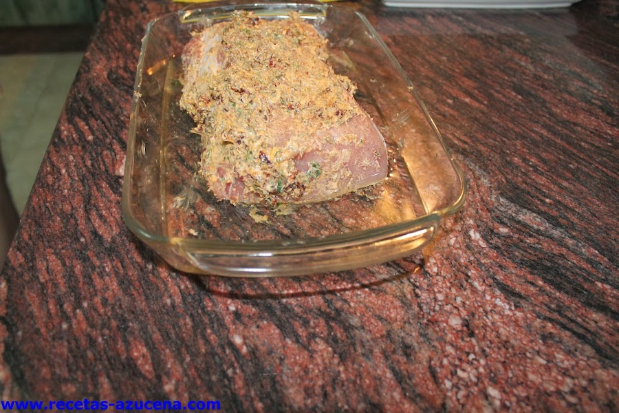 Vale, vamos con la receta, aunque al ser de lomo siempre pensamos que se va a quedar muy seco, en esta receta no es así, en mi casa nos encanta, espero que a vosotros también os guste, es muy fácil de hacer.