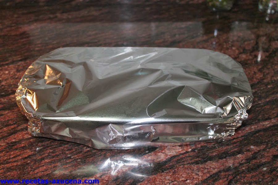 Taparemos bien la bandeja con papel de aluminio y la meteremos al horno durante 40 minutos.