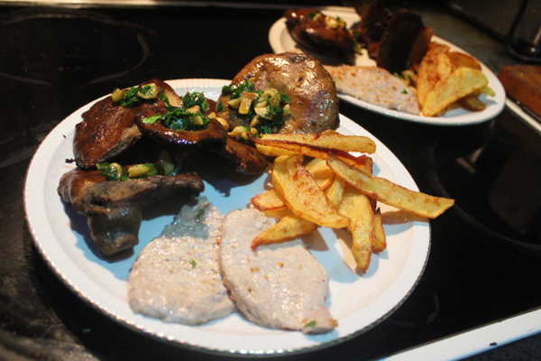 Últimamente me ha dado por cocinar a la plancha, y el otro día se me ocurrió consumir de esta forma, unos níscalos que me vi obligado a congelar, por haber comprado demasiados, junto con unos filetes de lomo de cerdo.