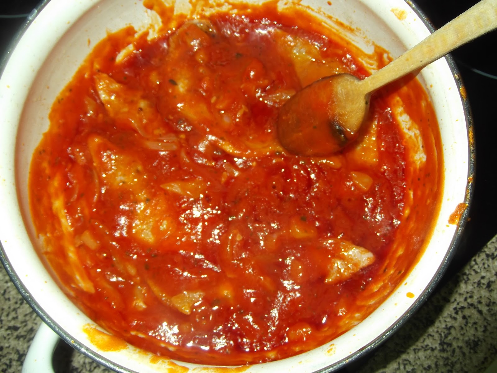 Una vez que estén hechas las verduras se incorpora el tomate y el perejil y se deja cocinar unos minutos. Ahora en una sartén se pone un poco de aceite, se sal-pimienta los filetes de lomo y se pasan por pan rallado. Se fríen vuelta y vuelta, aunque no del todo, ya que luego van a ir a la cazuela del tomate.