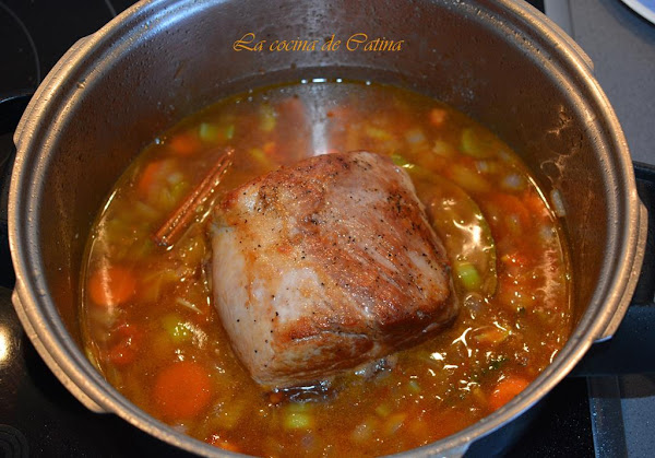 Dejamos enfriar la carne y una vez fría la reservamos fuera de la cazuela.